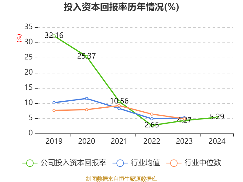 数据显示,2024年公司加权平均净资产收益率为5.79%,较上年同期上升0.88个百分点。公司2024年投入资本回报率为5.29%,较上年同期上升1.02个百分点。