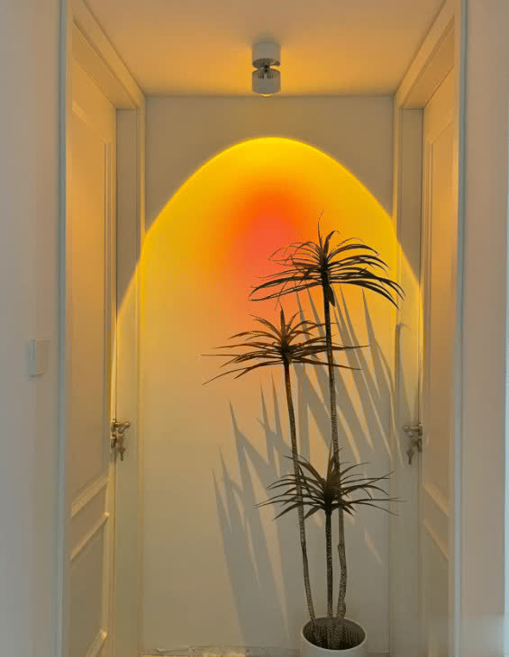 只需要一盏日落灯,就可以让夕阳悄悄落在家里,空落落的过道瞬间有了不一样的感觉,灯头还可以水平旋转,上下也可调整不同角度,投射出不同的光影,随手一拍都超有氛围感。